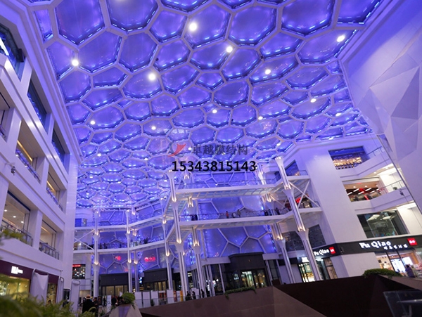(4)顏色和透光性:ETFE膜材通常為無(wú)色透明狀,也可以做成白色、藍(lán)色或者其他顏色。根據(jù)需要也可以在無(wú)色透明或者其他顏色膜材上印制各種圖案。