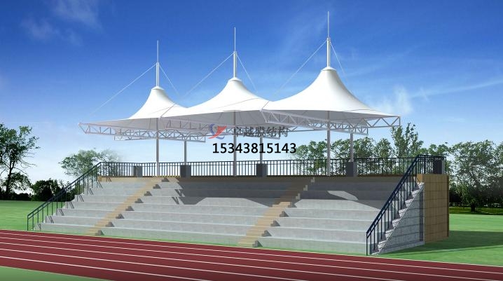膜結(jié)構(gòu)看臺也叫膜結(jié)構(gòu)看臺遮陽棚、罩棚、雨棚,主要是在看臺上方加上一個膜結(jié)構(gòu)制作的遮蔽結(jié)構(gòu),可以起到遮陽避雨的功能,自重輕,具有良好的受力特點——成為大跨度