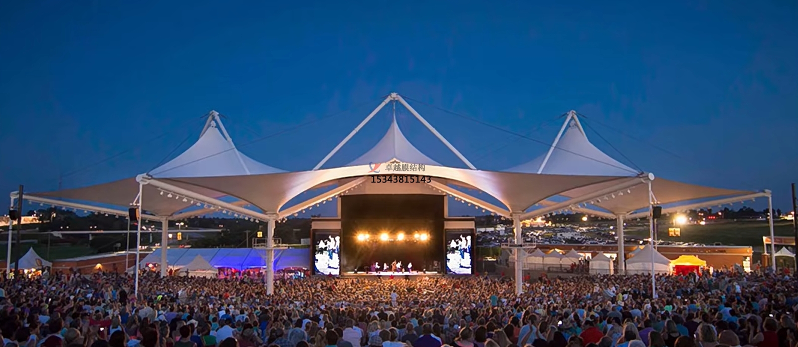 【卓越膜結構15343815143】膜結構舞臺在景觀設計中同樣大放異彩。索拉膜形式的應用,配合奇幻的燈光設計,為廣場、公園、景區(qū)等場所增添了一道道亮麗的風景線。