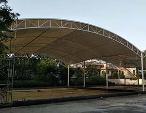 三門峽社會(huì)管理學(xué)院膜結(jié)構(gòu)看臺(tái)罩棚工程,長109.7米,寬14.937米(前挑11.437米,后挑3.5米),膜材展開面積2130平米,施工工期20個(gè)日歷天,本公司對(duì)膜結(jié)構(gòu)工程的保修實(shí)行終身負(fù)責(zé)制。