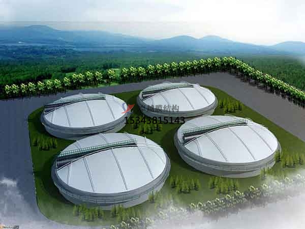 隨動式污水處理池加蓋,也稱反吊膜封閉,與常規(guī)建筑膜結(jié)構(gòu)不同之處在于,鋼構(gòu)在外部做支撐結(jié)構(gòu),膜材安裝在內(nèi)部做防護(hù)密閉,此類膜材采用污水池專用材料,具有防腐蝕、抗老化、免維護(hù)、美觀耐久、經(jīng)濟(jì)適用等優(yōu)點,廣泛應(yīng)用于各類中心傳動刮泥機(jī)設(shè)備頂部封閉除臭項目