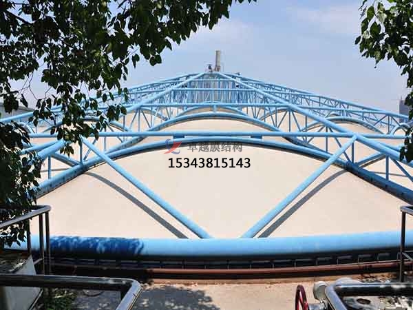隨動式污水處理池加蓋,也稱反吊膜封閉,與常規(guī)建筑膜結(jié)構(gòu)不同之處在于,鋼構(gòu)在外部做支撐結(jié)構(gòu),膜材安裝在內(nèi)部做防護(hù)密閉,此類膜材采用污水池專用材料,具有防腐蝕、抗老化、免維護(hù)、美觀耐久、經(jīng)濟(jì)適用等優(yōu)點,廣泛應(yīng)用于各類中心傳動刮泥機(jī)設(shè)備頂部封閉除臭項目。