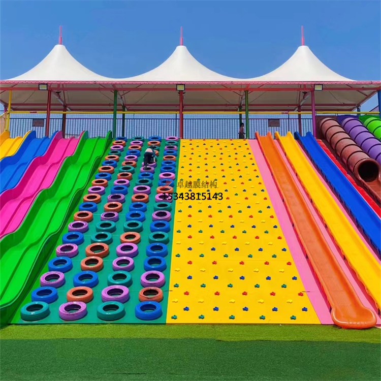 濮陽兒童樂園彩虹滑道遮陽棚生產(chǎn),主要是為兒童提供安全、舒適的游玩環(huán)境。該遮陽棚采用高強(qiáng)度材料制成,具有防曬、防水、防腐、耐用等特點,能夠有效遮擋陽光和雨水,保護(hù)兒童免受