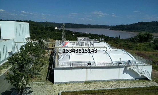 污水池加蓋的原理:密封收集,膜材完全覆蓋污水池,四周與池壁密封,防止廢氣外溢。廢氣輸送,罩體表面設(shè)出氣口,通過(guò)管道將廢氣輸送至凈化設(shè)備(如噴淋塔)。凈化處理,酸性廢氣采用堿液噴淋吸收,堿性廢氣采用酸液噴淋。處理效率可達(dá)90%以上,確保達(dá)標(biāo)排放。防腐設(shè)計(jì),鋼構(gòu)不與池內(nèi)氣體接觸,膜材采用耐腐蝕的氟碳纖維材質(zhì),雙重防護(hù)提升耐久性。