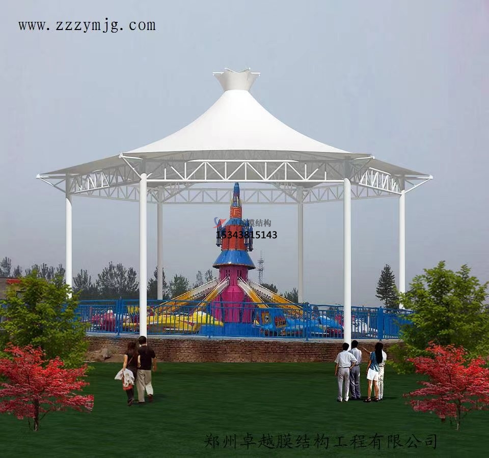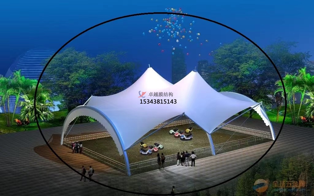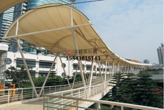 膜結(jié)構(gòu)遮陽(yáng)棚造型設(shè)計(jì):其造型設(shè)計(jì)主要從整體風(fēng)格和形狀設(shè)計(jì)兩方面出發(fā)。其中整體風(fēng)格是指根據(jù)使用場(chǎng)所和客戶喜好確定遮陽(yáng)棚的整體風(fēng)格,如簡(jiǎn)約現(xiàn)代、歐式古典、自然生態(tài)等??梢酝ㄟ^(guò)調(diào)整遮陽(yáng)棚的形狀、線條、色彩來(lái)實(shí)現(xiàn)不同的風(fēng)格效果。形狀設(shè)計(jì),膜結(jié)構(gòu)遮陽(yáng)棚的形狀豐富多樣,常見(jiàn)的有平頂式、坡頂式、拱形式、傘形式等。還可以根據(jù)場(chǎng)地的特殊要求和創(chuàng)意設(shè)計(jì)出獨(dú)特的形狀,如仿生形、自由曲線形等,以增加遮陽(yáng)棚的美觀性和獨(dú)特性。