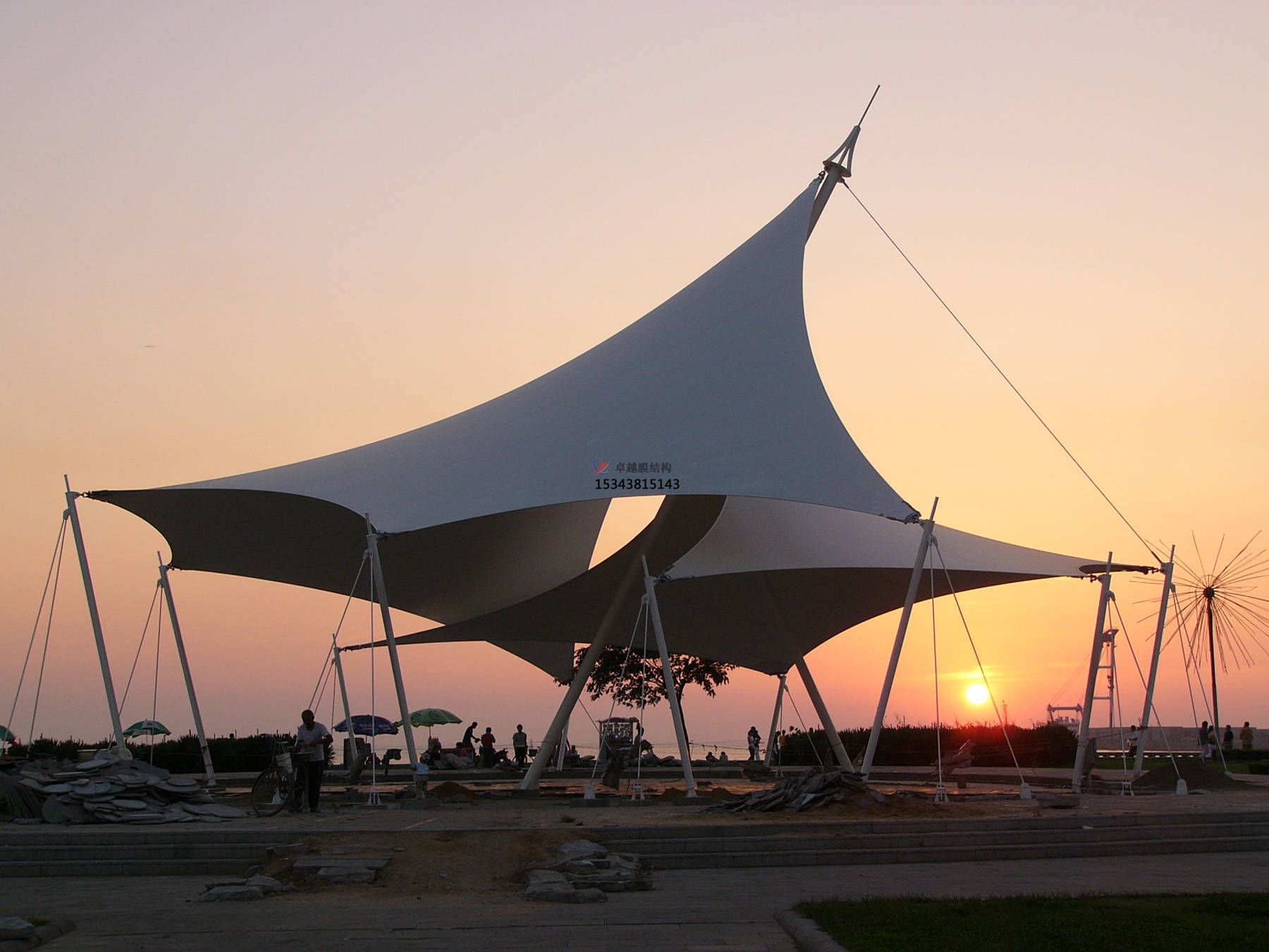 在三門峽地區(qū),膜結構景觀拉膜案例包括但不限于:三門峽市湖濱區(qū)“七彩三門峽”夜景工程、三門峽市湖濱區(qū)“夢幻海洋”水上樂園、三門峽市湖濱區(qū)“七彩花海”公園、三門峽市湖濱區(qū)“城市之舟”公共藝術空間等。這些景觀拉膜案例采用了先進的膜結構設計和制造技術,結合了當地的文化和自然環(huán)境,形成了獨特的景觀效果,為三門峽地區(qū)的旅游業(yè)和城市形象注入了新的活力。