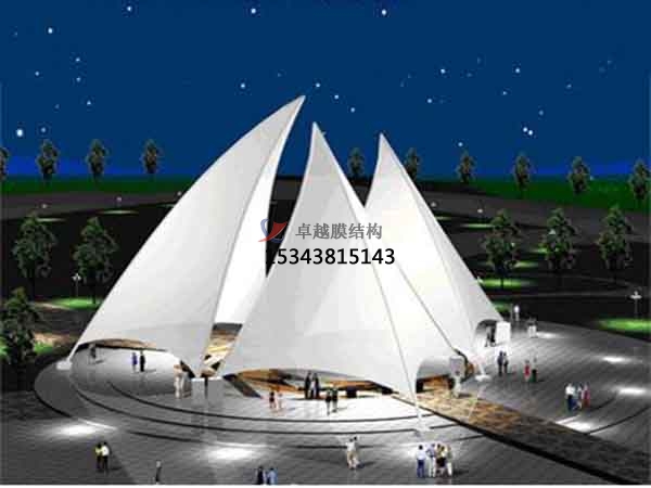 景觀膜結(jié)構(gòu)的獨特曲面外形使其具有強烈的雕塑感。膜面通過張力達到自平衡。負高斯膜面高低起伏具有的平衡感使體型較大的結(jié)構(gòu)看上去像擺脫了重力的束縛般輕盈地 雕塑般的質(zhì)感令人激動,更好的膜結(jié)構(gòu)設(shè)計是結(jié)構(gòu)與外形的有機融合,使其顯得了類拔萃,同時與自然環(huán)境、歷史及現(xiàn)代的城市景觀有機結(jié)合。輕型結(jié)構(gòu)可以看成是大型的雕塑作品,可為其周邊空間增添活力,成為周圍環(huán)境的補充和焦點。利用膜材的透光性和反射性,經(jīng)過設(shè)計的人工燈光也可使膜結(jié)構(gòu)成為光的雕塑。