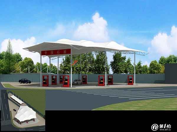 一、造型獨特,辨識度高,由于膜材重量輕,適合加油站這種大跨度的建筑,而且是采用張力結(jié)構(gòu)所以在造型設(shè)計上具有很大的優(yōu)勢,可以實現(xiàn)非常具有藝術(shù)氣息的造型。