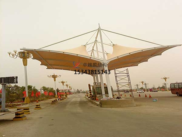 6、設施:膜結構以其特殊的建筑表現(xiàn)手法,主要體現(xiàn)在造型、漫射透光性、豐富多彩,可廣泛應用于入口、標志性小品 、步行街、停車場等,其他建筑特性無須較高要求。