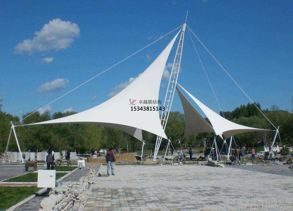 張拉膜景觀是一種特殊的現(xiàn)代建筑結(jié)構(gòu),它是以高強(qiáng)度柔韌性薄膜材料與張拉體系相結(jié)合,形成的具有一定剛度的空間結(jié)構(gòu)體,是集建筑學(xué)、結(jié)構(gòu)力學(xué)、精細(xì)化工與材料科學(xué)為一體的高