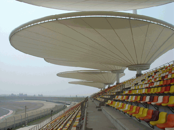 膜結構給我們生活帶來了更多的驚喜,帶來了不同的視覺美感。先看它的外觀,整體給人的感覺比較輕盈,簡單,新穎,不像傳統(tǒng)建筑,給人的感覺比較沉重。優(yōu)越性能:自潔性、透光節(jié)能性、經(jīng)濟性、藝術性、防火性與抗震性、造型多樣性;另外其還具有應用領域廣泛、能覆蓋大跨度空間及施工周期短的優(yōu)點。