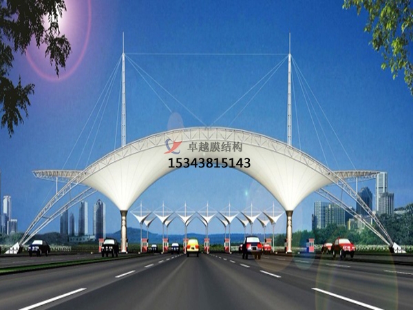 收費站頂棚運用膜結(jié)構(gòu)來設(shè)計建造十分可取,收費站廣場空間跨度大,屬于開放空間,通過膜材料結(jié)合鋼柱支撐的膜結(jié)構(gòu)能使用收費站整體環(huán)境起到美化作用。同時膜結(jié)構(gòu)具備功能上的諸多優(yōu)點,相信不久的將來,收費站膜結(jié)構(gòu)頂棚會越來越常見。