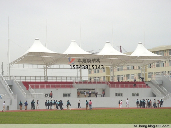 張拉膜遮陽棚主要采用鋼結(jié)構(gòu)做骨架支撐結(jié)構(gòu),高自潔建筑膜材做屋面材料防水材料,設(shè)計美觀大方,結(jié)構(gòu)安全穩(wěn)定,使用壽命可達(dá)15年到30年。廣泛應(yīng)用在于各類大中專院校,體育場配套雨