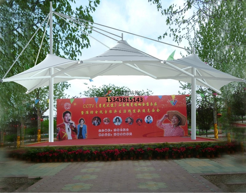 近年來,隨著建筑空間觀念的日益深化以及科學手段的不斷提高,膜結構已是現代建筑環(huán)境學發(fā)展的主流。它可以構成單曲面,多曲面等不同建筑結構形式,滿足了建筑師們對建筑與美學高度統(tǒng)一的要求。 由于膜材的光透性,白天陽光可以透過膜材形成漫射光,使舞臺下如同自然,能很好地節(jié)約能源。夜間彩燈打射形成的絢爛景觀也讓市民體驗到不一樣的感覺。膜材具有防水 性和遮陽效果,而不受到日曬雨淋,因此膜結構舞臺能創(chuàng)造出與自然環(huán)境相媲美的空間形式。