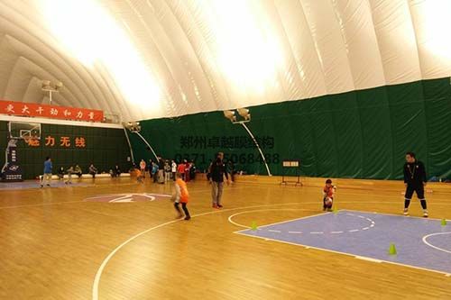 充氣膜結(jié)構(gòu)籃球場 充氣膜結(jié)構(gòu)籃球場是用特殊的建筑膜材做外殼,配備一套智能化的機電設備在氣膜建筑內(nèi)部提供空氣的正壓把氣膜建筑主體支撐起來的一種