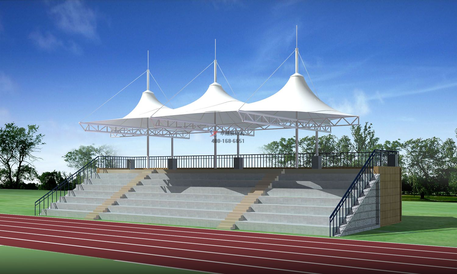 膜結(jié)構(gòu)建筑具有耐紫外線、耐腐蝕、柔韌性好、材料輕、造型美觀、環(huán)保節(jié)能、機械性能好、耐火性強、自潔能力強、安裝拆卸方便等優(yōu)點。可以說,它是一種非常更好的新型建筑材料,廣泛應(yīng)用于各種遮陽、商業(yè)吊頂、景觀棚等,使用壽命可達15年以上,可以說作為一種材料具有固有的優(yōu)勢。但體育場看臺膜結(jié)構(gòu)在設(shè)計與施工時也有幾項需注意:
