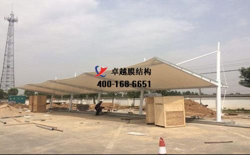 膜結(jié)構(gòu)充電站樁車棚設(shè)計(jì)、施工案例,我們?cè)谛弥莩薪恿诵弥菔泄财嚬?、忻州新能源眾泰汽?s店、忻州市汽車站