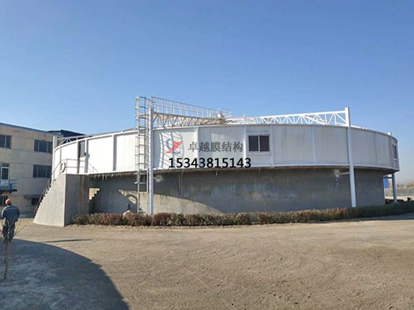 鄭州市卓越膜結(jié)構(gòu)工程公司是集污水池加蓋反吊膜加蓋工程設(shè)計施工、結(jié)構(gòu)設(shè)計、靜動力計算分析、整體結(jié)構(gòu)安裝以及使用維護于一體的綜合性工程公司。污水池反吊膜結(jié)構(gòu)中的高強度柔韌薄膜稱膜材,它是一種耐腐蝕、耐高溫、耐久用、高強度的樹脂類涂層織物,由多種復(fù)合PVC樹脂涂層刀刮成型,具有質(zhì)地柔韌、厚度小、重量輕、透光性好的特點。對自然光吸收和透射能力、阻燃,具有良好的耐久、防火、氣密等特性;表面經(jīng)過特氟龍?zhí)幚砘蚨?a title="氧化">氧化鈦抗老化處理,具有較高的自清潔性能。下面就大家介紹一下我公司在舟山市地區(qū)完成的部分污水池膜結(jié)構(gòu)封閉項目。