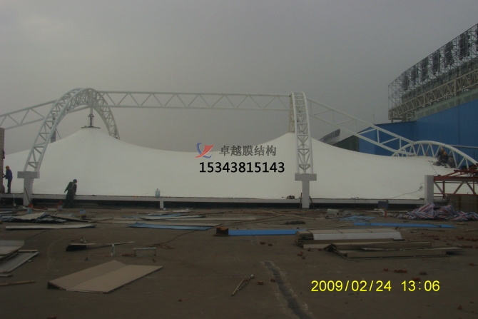 膜結(jié)構(gòu)是一種建筑與結(jié)構(gòu)結(jié)合的結(jié)構(gòu)體系,是采用高強度柔性薄膜材料與輔助結(jié)構(gòu)通過一定方式使其內(nèi)部產(chǎn)生一定的預(yù)張應(yīng)力,并形成應(yīng)力控制下的某種空間形狀,作為覆蓋結(jié)構(gòu)或建筑物主體,并具有足夠剛度以抵抗外部荷載作用的一種窄間結(jié)構(gòu)類型。