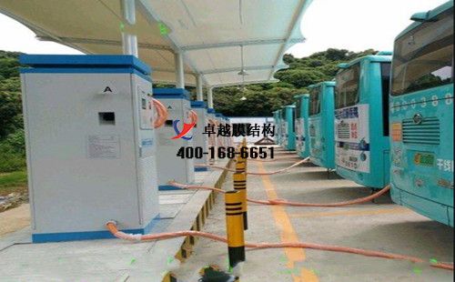 膜結(jié)構(gòu)充電站樁車棚設(shè)計(jì)、施工案例,我們?cè)跐摻薪恿藵摻谐莨步煌ㄓ邢挢?zé)任公司、潛江和聚新能源汽車銷售有限公司、潛江市汽車站