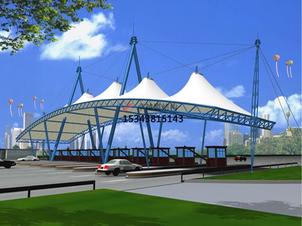 四、收費站膜結(jié)構(gòu)罩棚在結(jié)構(gòu)的穩(wěn)定性,耐久性、抗風性、抗雨雪性對比傳統(tǒng)的彩鋼板有著不可比擬的優(yōu)勢,膜結(jié)構(gòu)本身的應(yīng)力結(jié)構(gòu)在遇到雨雪天氣膜結(jié)構(gòu)本身的結(jié)構(gòu)特性也可以保證其大跨度的抗壓穩(wěn)定性。
