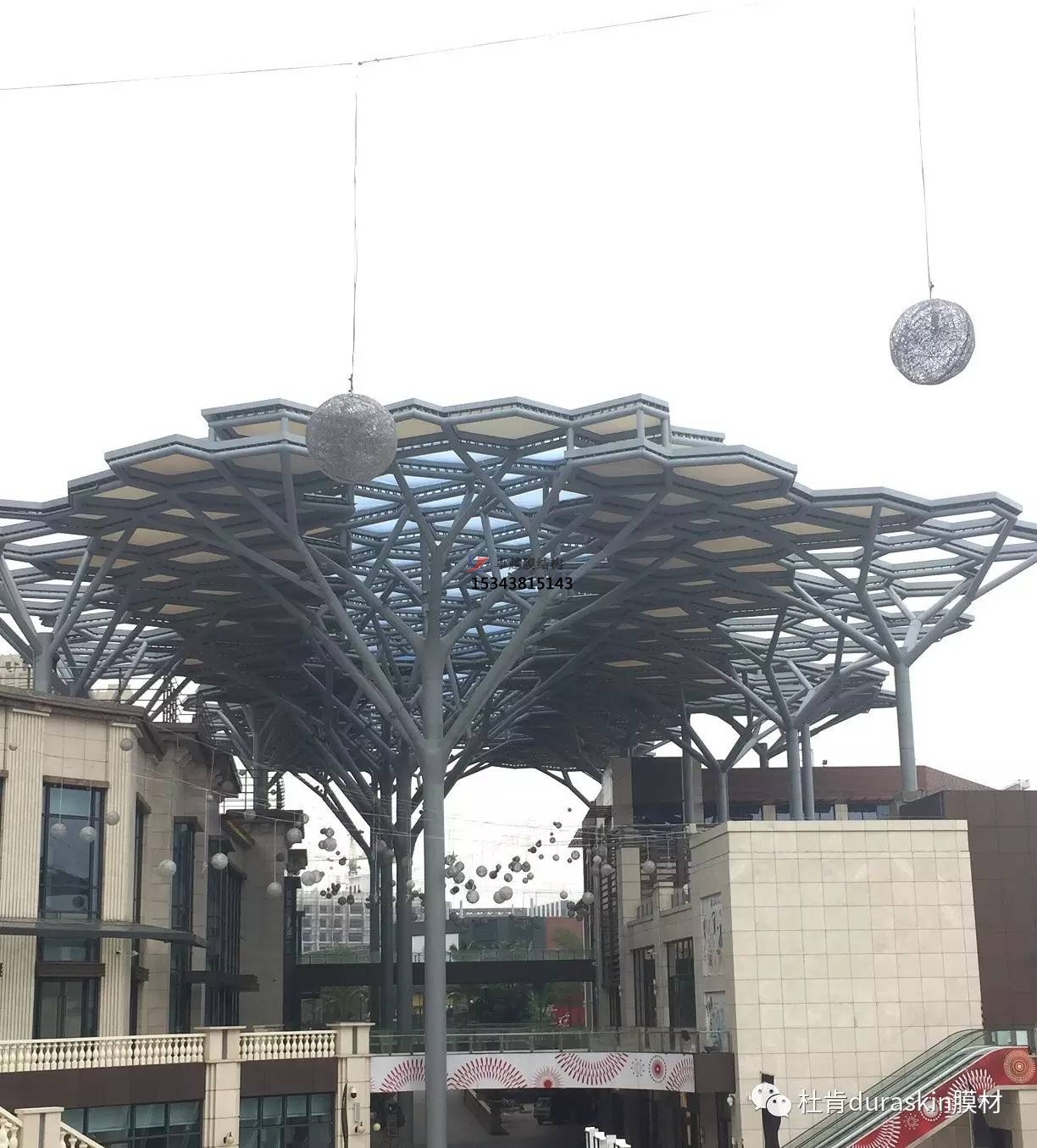 透光性:透光性是現(xiàn)代膜結(jié)構(gòu)較被廣泛認(rèn)可的特性之一。膜材的透光性可以為建筑提供所需的照度,這對于建筑節(jié)能十分重要。對于一些要求光照多且亮度高的商業(yè)建筑等尤為重要。通過自然采光與人工采光的綜合利用,膜材透光性可為建筑設(shè)計提供更大的美學(xué)創(chuàng)作空間。夜晚,透光性將膜結(jié)構(gòu)變成了光的雕塑。