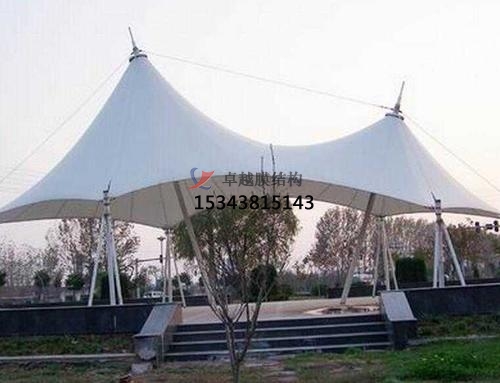 ?。?)加面層的PVC膜材:在PVC膜材表面涂覆聚偏氟乙烯或聚氟乙烯,各種性能優(yōu)于純PVC膜材,應(yīng)用廣泛,價格相應(yīng)高于純PVC膜材。張拉膜景觀,又叫張拉張拉膜景觀(TensionedMembranestructure),是以建筑織物,即膜材料為張拉主體,與支撐構(gòu)件或拉索共同組成的結(jié)構(gòu)體系,它以其新穎的建筑造型,良好的受力特點,成為大跨度空間結(jié)構(gòu)的主要形式之一。膜材料是指以聚酯纖維基布或PVDF、PVF、PTFE等不同的表面涂層,配以的PVC組成的具有穩(wěn)定的形狀,并可承受載荷的建筑紡織品。它的壽命因不同的表面涂層而異,一般可達成10—25年。