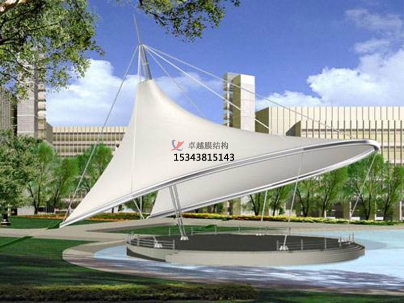 膜結構較廣應用于車棚、游泳池、景觀、運動腳手架等領域中,膜結構景觀具有張力大、形式多樣化的特點,從寬敞的大空間、透明透光的膜材料表面、明亮溫和的室內環(huán)境、桅桿