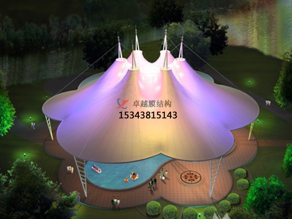 一個(gè)城市的中心區(qū)反映一個(gè)城市的地理風(fēng)貌和民族風(fēng)情,同時(shí),也是一個(gè)城市文化發(fā)展程度的標(biāo)志。而景觀設(shè)計(jì)要求其具有廣泛的可讀性、雅俗共賞,既有超凡脫俗的藝術(shù)價(jià)值,又能使大眾喜聞樂(lè)見(jiàn)與大眾息息相通。膜結(jié)構(gòu)以其輕盈飄逸的造型、柔美并帶有力量的曲線和大跨度和大空間的鮮明個(gè)性和標(biāo)識(shí)性,應(yīng)用于城市小品設(shè)計(jì)中。