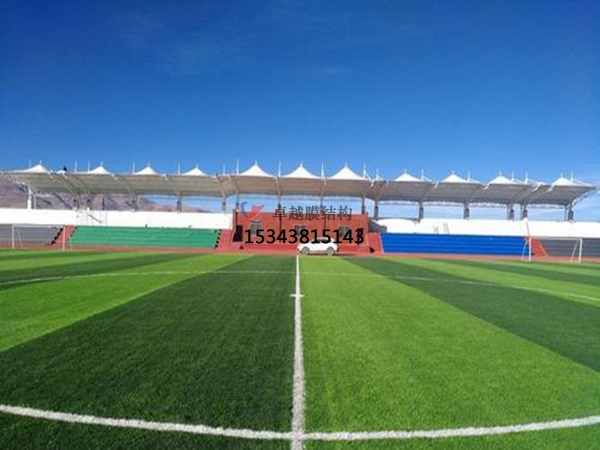 膜結(jié)構(gòu)看臺(tái)是20世紀(jì)中期發(fā)展起來的一種新型建筑結(jié)構(gòu)形式,是由多種高強(qiáng)薄膜材料及加強(qiáng)構(gòu)件通過一定方式使其內(nèi)部產(chǎn)生一定的張應(yīng)力,加上高強(qiáng)度材料鋼索、鋼結(jié)構(gòu)的采用,使其成為能承受一定外荷載作用的。適合跨越大空間而形成無柱的大跨度結(jié)構(gòu)體系,該體系自重輕、造型可以靈活多樣,它可打破純直線建筑風(fēng)格模式達(dá)到了剛與柔、力與美得完美組合。具有良好的環(huán)保性、透光性、自清潔性更具有很好的防火性和抗震性,越來越受到建筑師的青睞,具有廣闊的應(yīng)用前景。