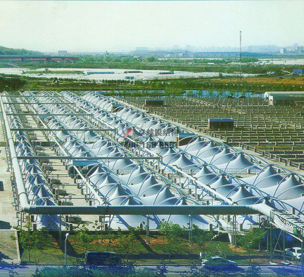 4.該項(xiàng)目采用了抗腐蝕能力很強(qiáng)的氟碳纖膜把廢氣罩住,鋼結(jié)構(gòu)在外部起到支撐的作用,將膜結(jié)構(gòu)吊起,膜材料在下部接觸污水池廢氣,鋼結(jié)構(gòu)在外部不與廢氣接觸,這樣既發(fā)揮了氟碳纖膜的抗腐蝕性能,又從根本上解決了鋼結(jié)構(gòu)由于與腐蝕性氣體接觸而帶來的腐蝕問題,因而鋼結(jié)構(gòu)可以按普通建筑鋼結(jié)構(gòu)的防腐等級(jí)考慮進(jìn)行設(shè)計(jì),具有50年的使用壽命,發(fā)揮了鋼結(jié)構(gòu)的性能,實(shí)現(xiàn)了結(jié)構(gòu)骨架與覆蓋材料的完美結(jié)合。歡迎來電訂購(gòu),聯(lián)系電話:18538073851,小編期待您的咨詢。