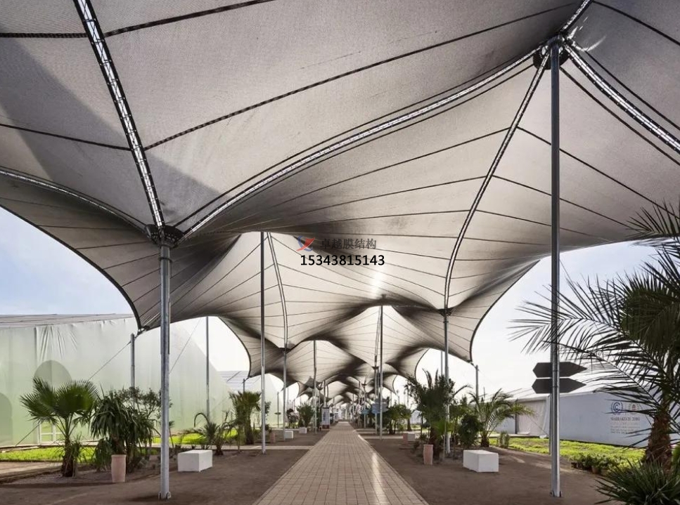 索膜結(jié)構(gòu),顧名思義,是由高強(qiáng)度柔性薄膜材料與其他材料(如鋼索、鋼結(jié)構(gòu)支柱等)共同作用而形成的一種穩(wěn)定的空間結(jié)構(gòu)形式。其最大的特點(diǎn)在于造型自由、輕巧、柔美,能夠創(chuàng)造出各種優(yōu)美的曲面造型,給人以強(qiáng)烈的視覺沖擊力。此外,索膜結(jié)構(gòu)還具有阻燃、制作簡易、安裝快捷、節(jié)能、易于維護(hù)以及使用安全等優(yōu)點(diǎn),這些特點(diǎn)使得它在世界各地得到了廣泛的應(yīng)用。
